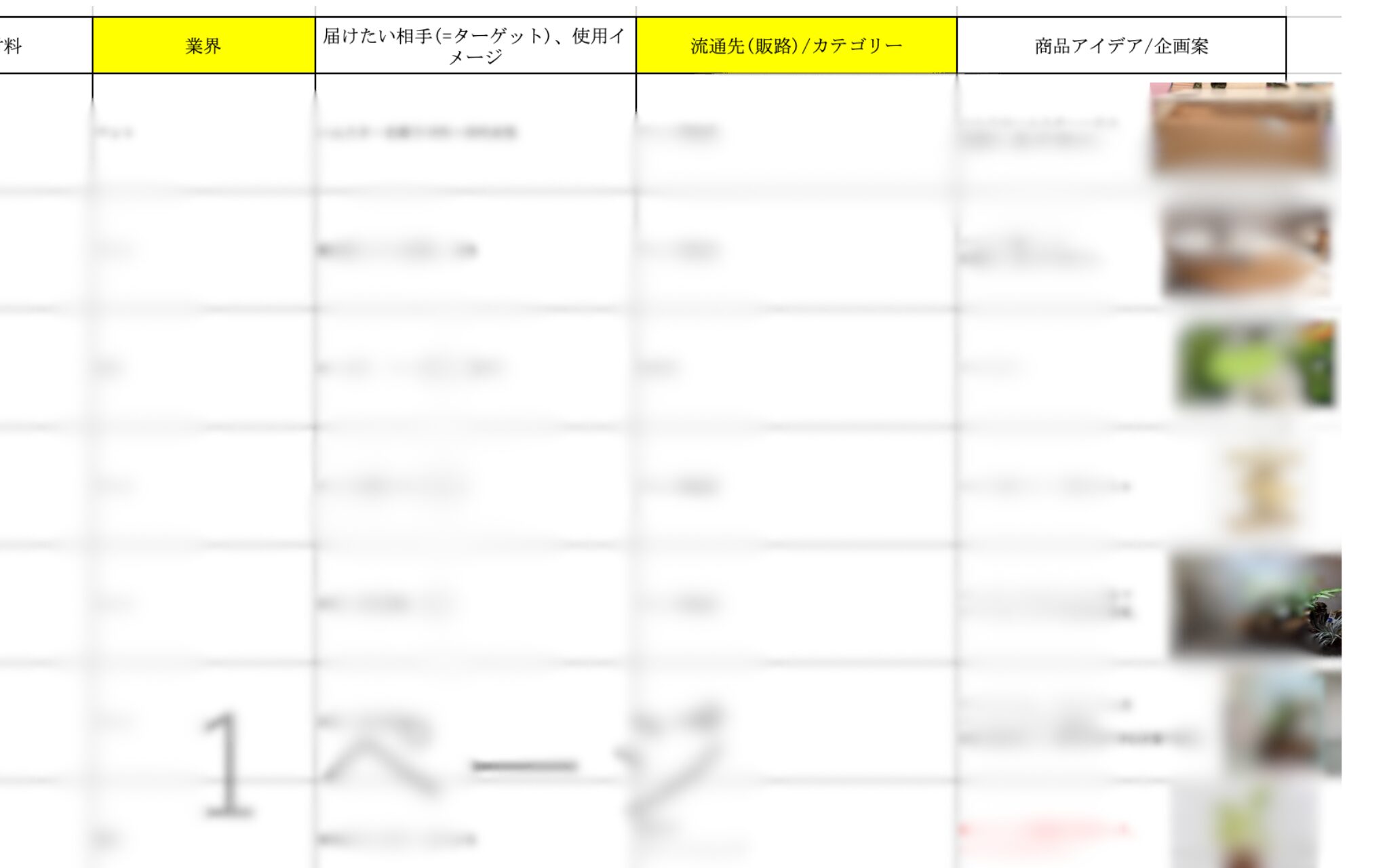 工程の前半では、プロジェクトの目的を共有した上で、自社が持つ技術や素材の強みを明らかにしていきます。