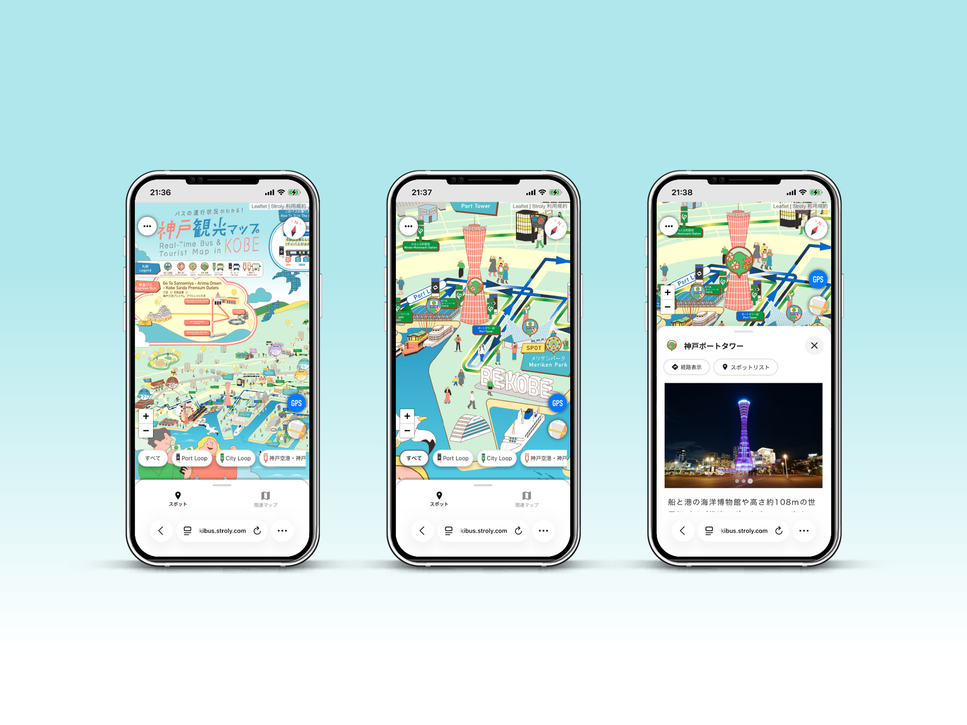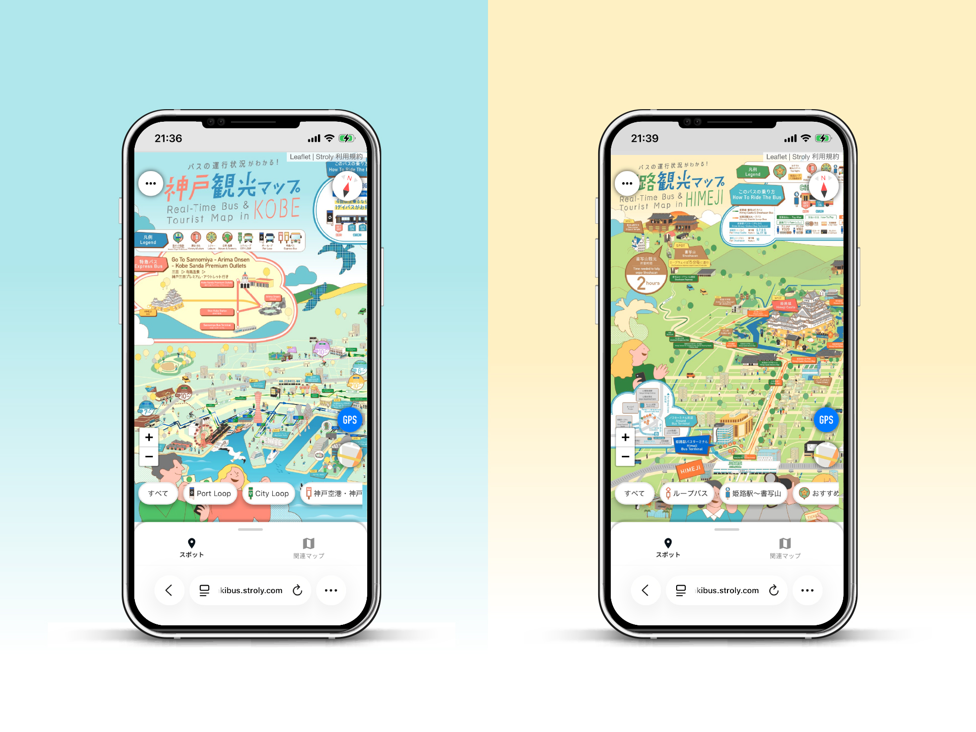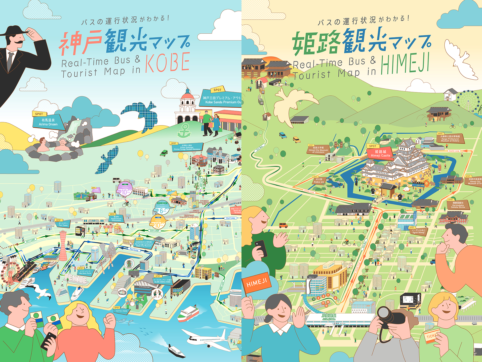 株式会社strolyさんからのご依頼により、神姫バス株式会社が提供する神戸市・姫路市の観光デジタルマップのビジュアルデザインを担当しました。