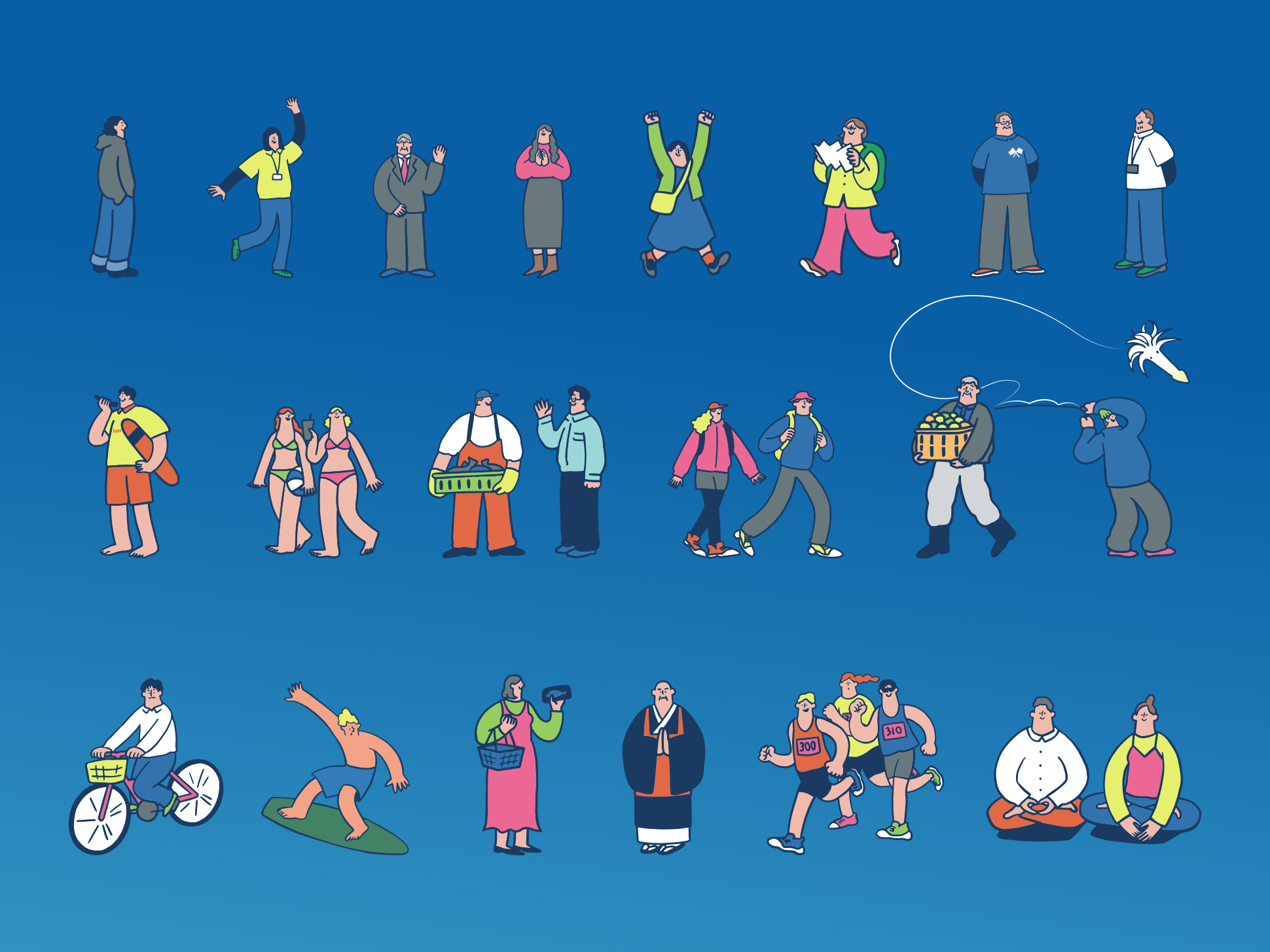 イラストは、くっきりとした主線で描いた、ゆるやかなシルエットのタッチを採用。