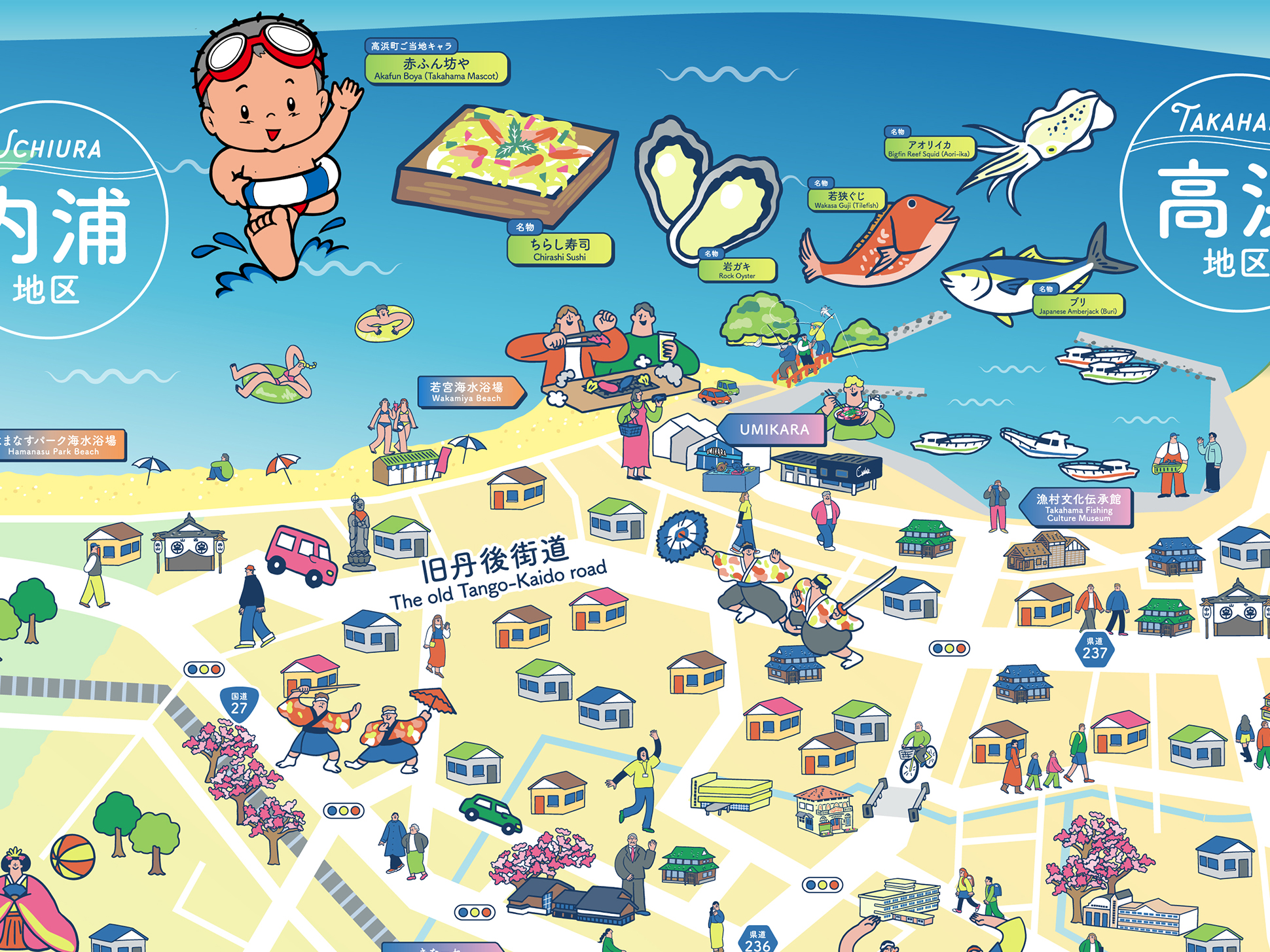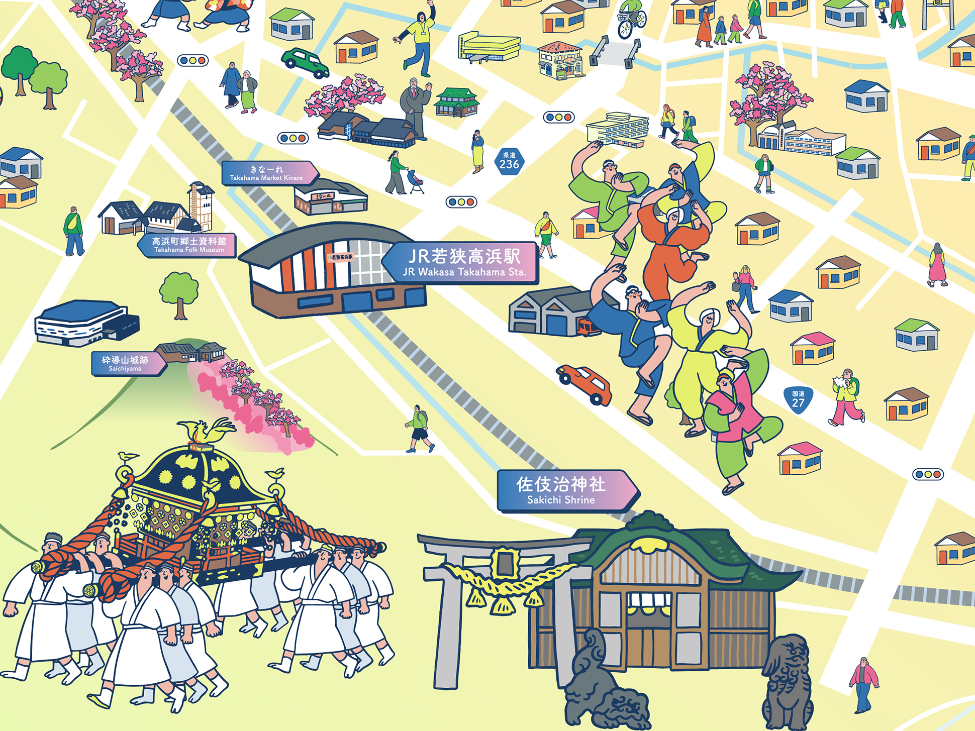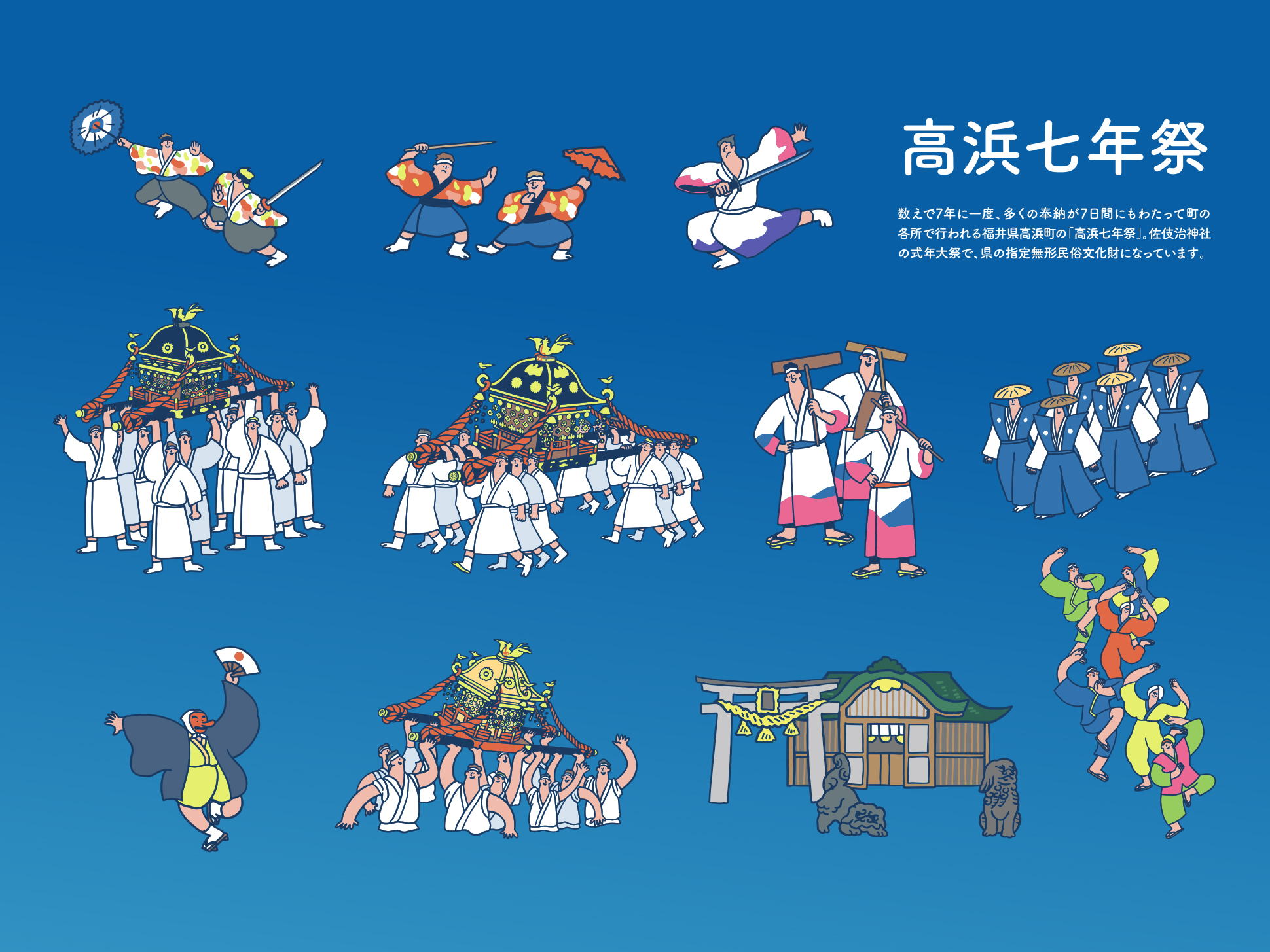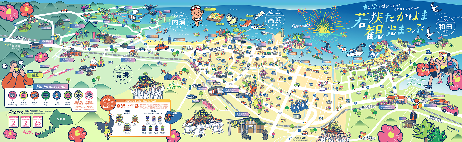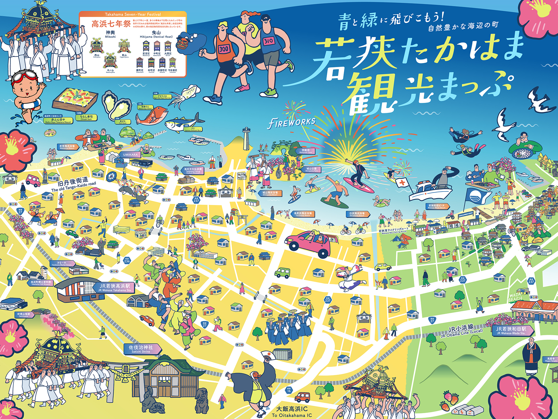 株式会社Strolyさまと共に、福井県高浜町で開催される「高浜七年祭」に向けたデジタルマップ「若狭たかはま観光まっぷ」のデザインおよびアートディレクションを担当しました。