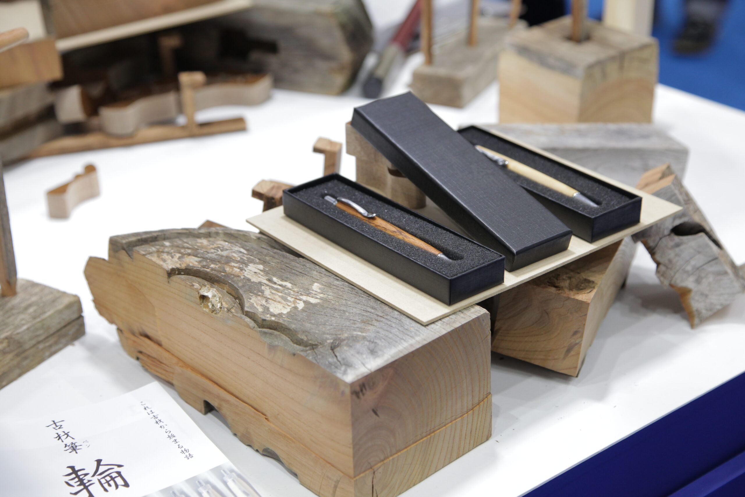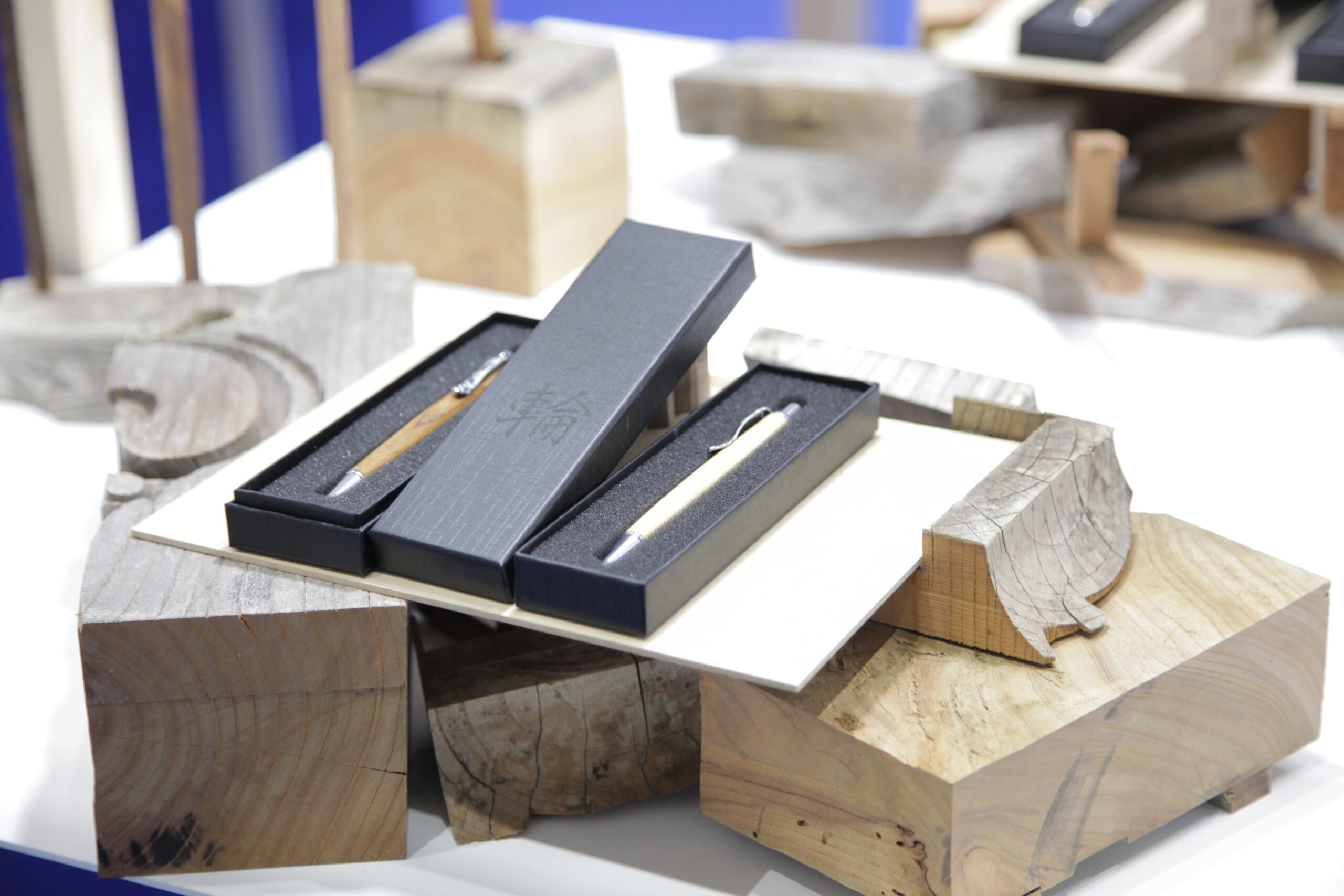 捨てられるはずだった古材を加工し、輪島塗の職人が拭漆で仕上げ、美しいペンとして蘇らせました。