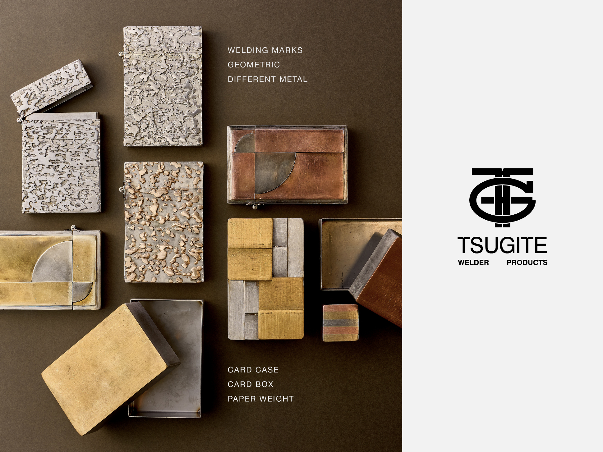 同じ設計、同じ工程であっても、 溶接の表情が完全に揃うことはありません。 熱の入り方、わずかな揺らぎ、金属の反応。 その違いが、それぞれのプロダクトに個性を与えます。 名刺ケースやペーパーウェイトとして日常で使われる中で、 金属の重さや冷たさとともに、 「人の手がつくったもの」を持っている感覚を味わえる。 TSUGITEは、 機能だけで完結しない、 技術を感じるためのステーショナリーです。