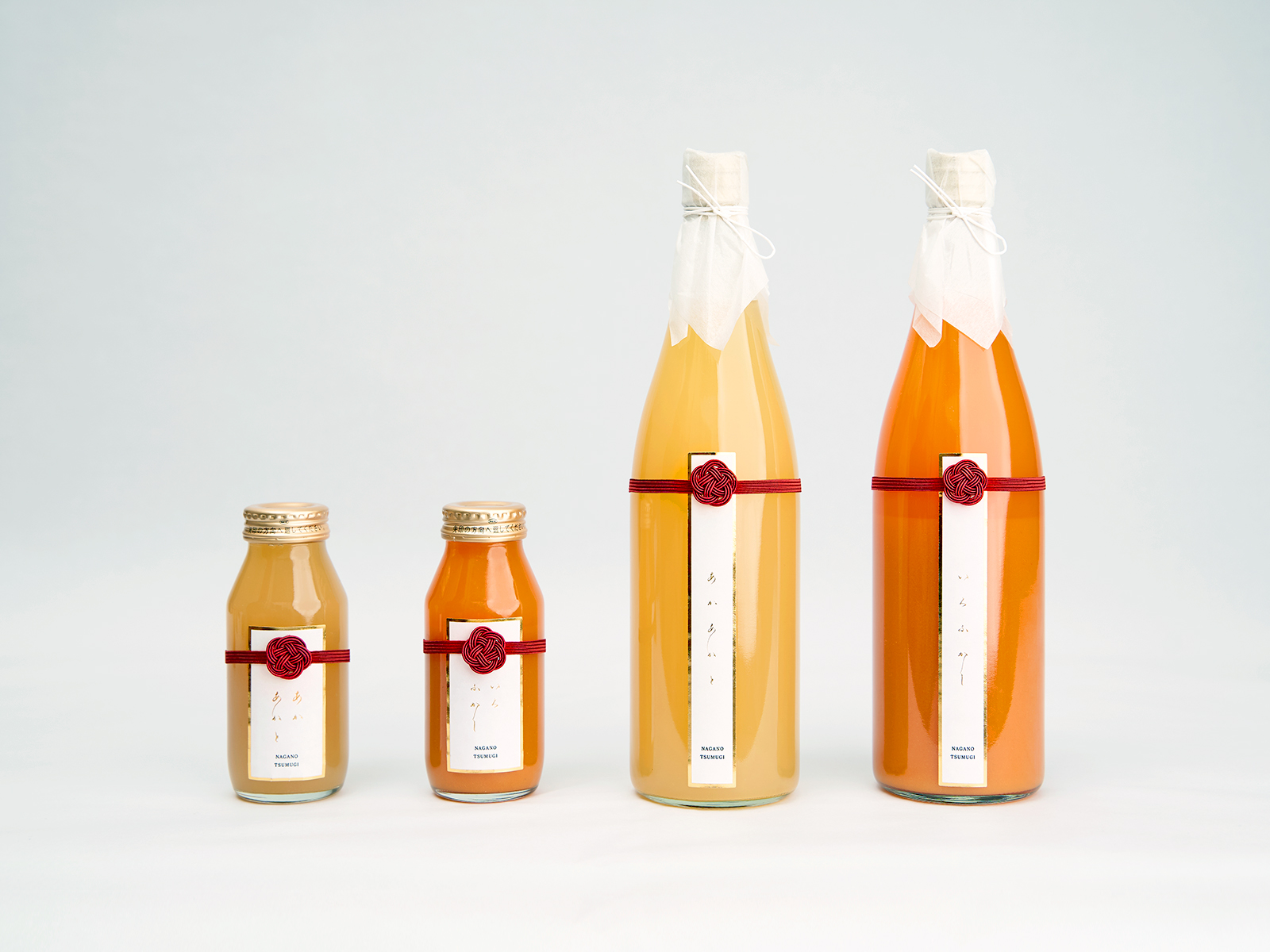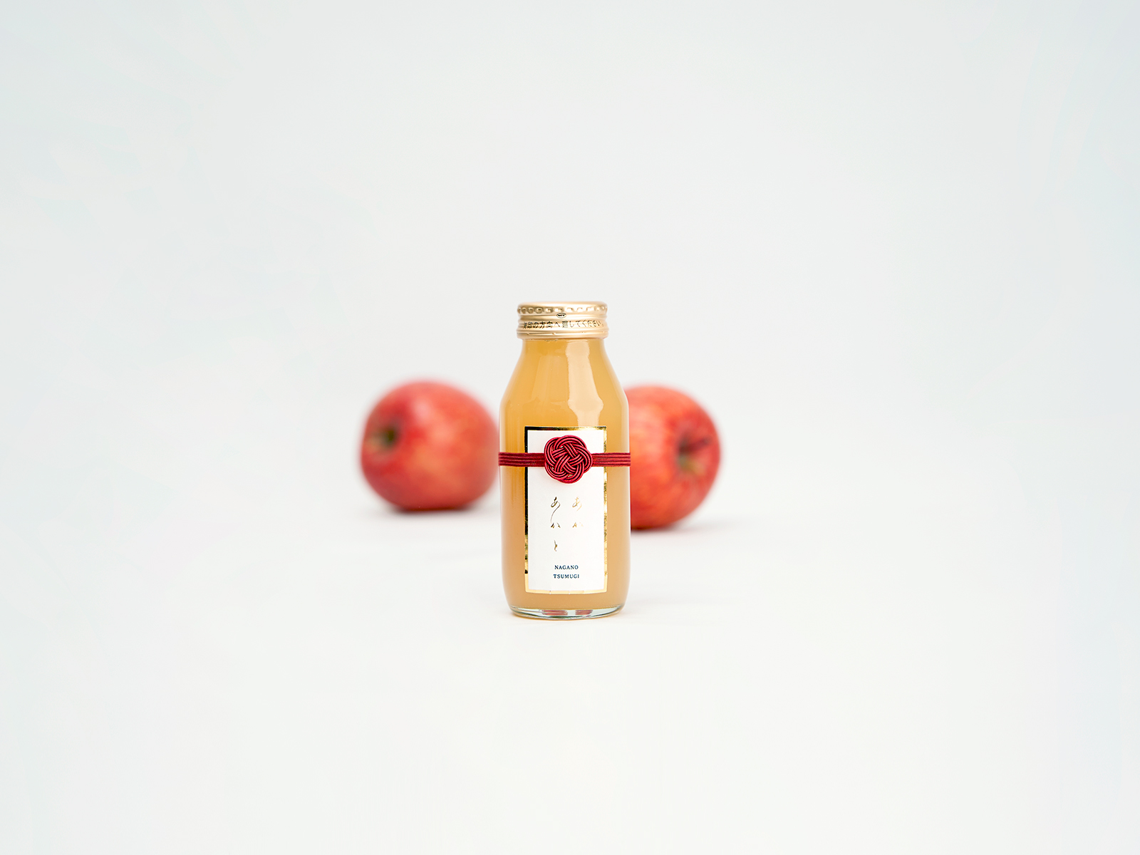 長野県営業局が運営する信州ブランドプロダクト育成支援事業「Session信州」にて、日本料理・蕎麦懐石「紡ぎ」さまと共同でりんごジュース商品開発を実施。商品名「あかあかと」「いろふかし」のパッケージデザインおよびブランディング設計を担当しました。
