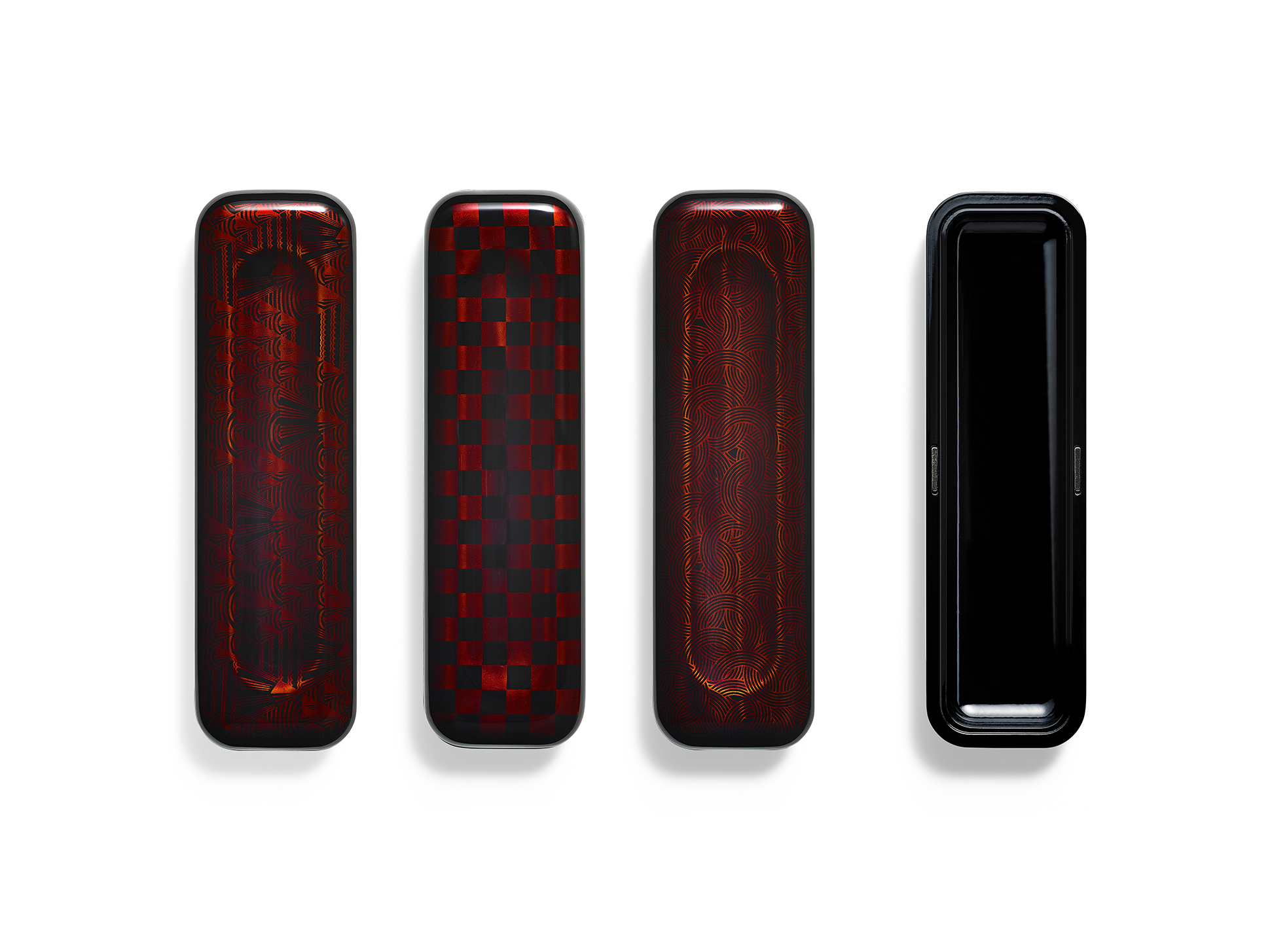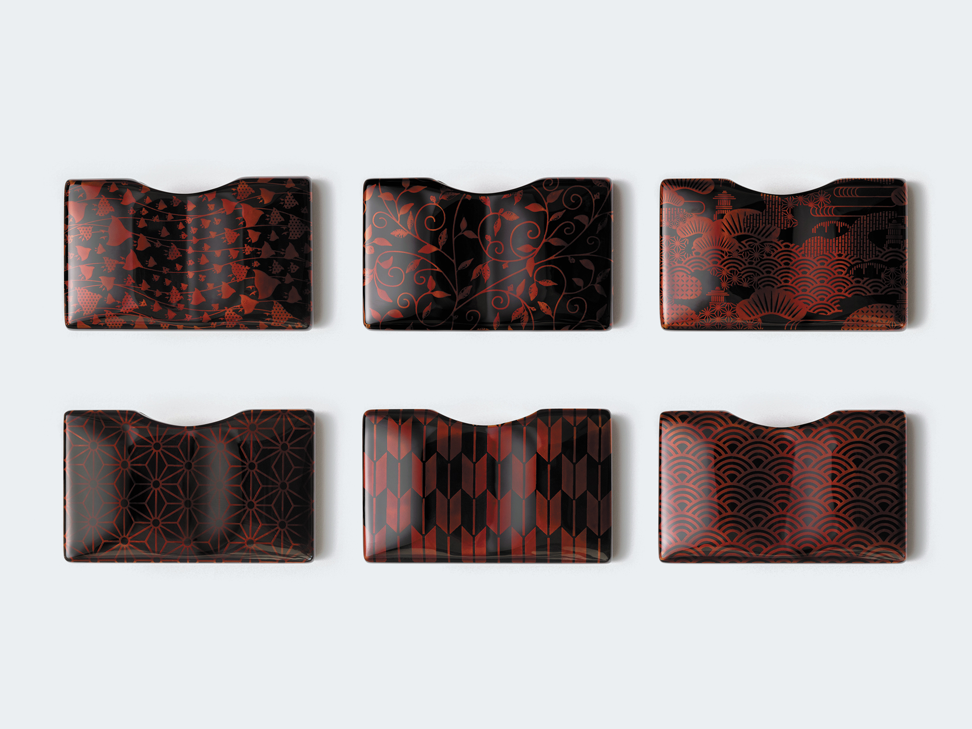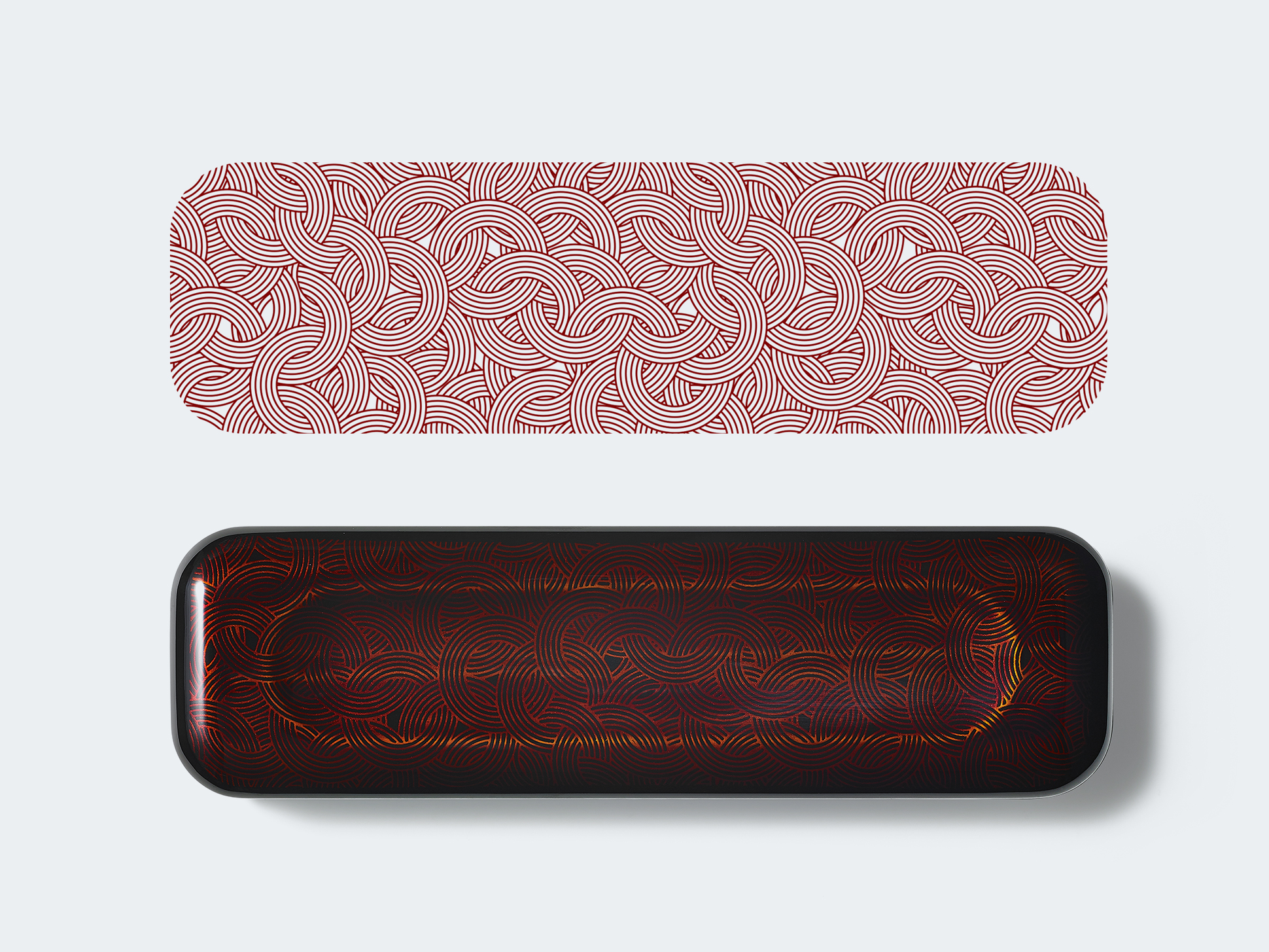 伝統文様をベースにしながら、単なる再解釈ではなく、プロダクトの曲面や光の反射を計算した設計を行いました。漆は光の当たり方によって表情が変わる素材。その特性を活かし、柄の密度や強弱、線の流れを細かく調整しています。