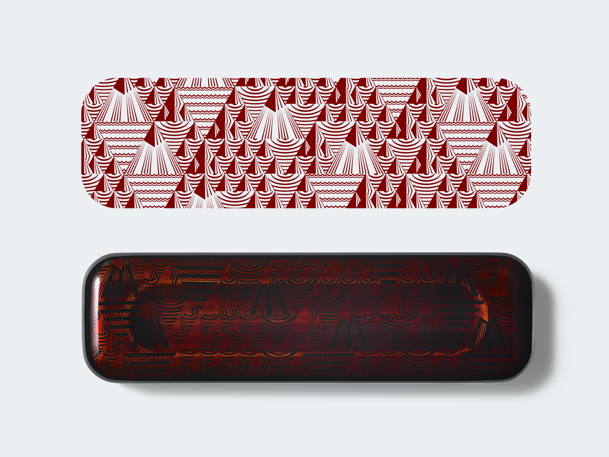 プロダクトの曲面を“波”に見立て、千鳥のサイズに強弱をつけることで漆の奥行きをより引き立てる設計としています。
