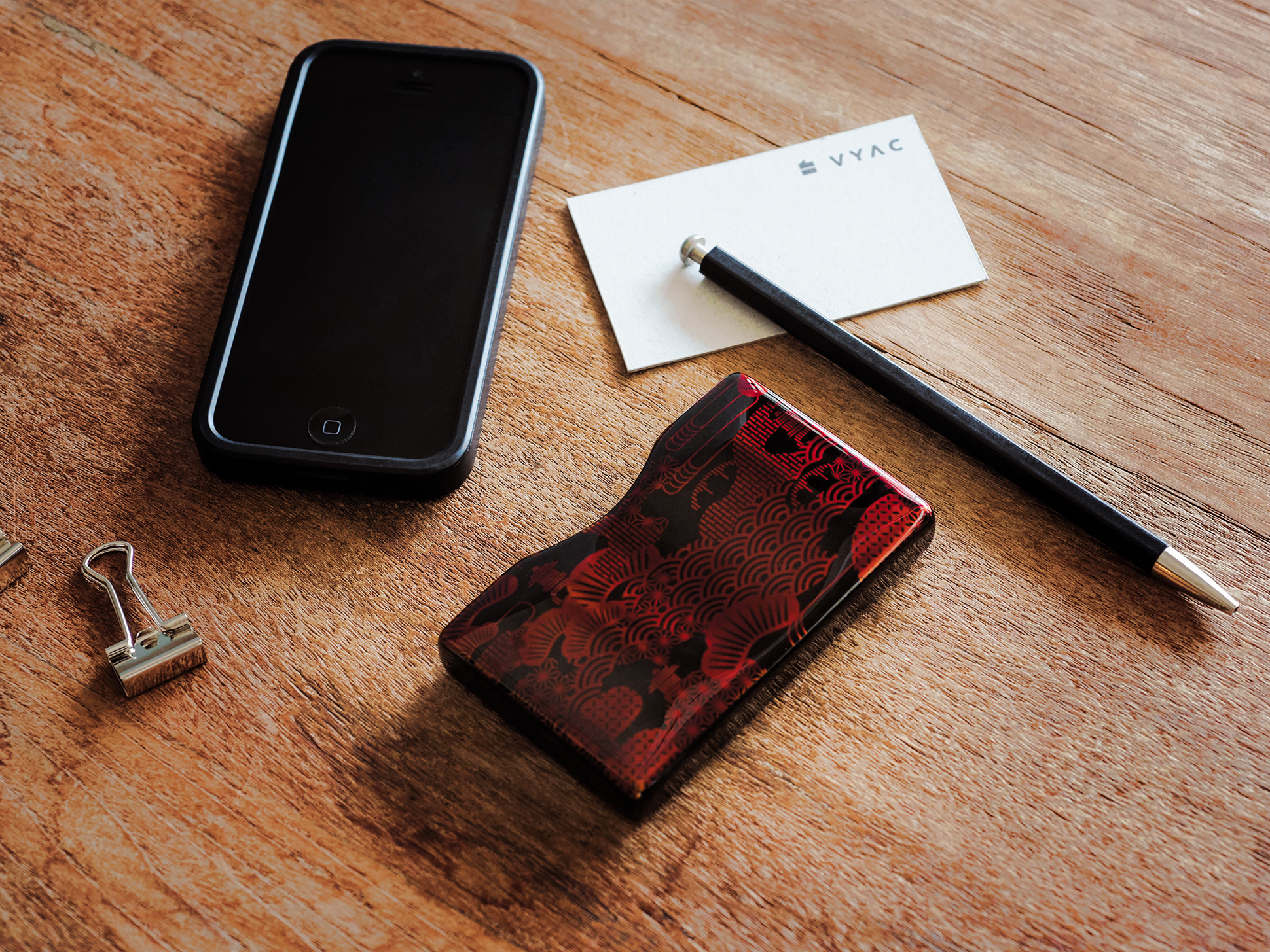 VYACの特徴の一つが、白檀塗の上に施されるオリジナルパターンデザインです。