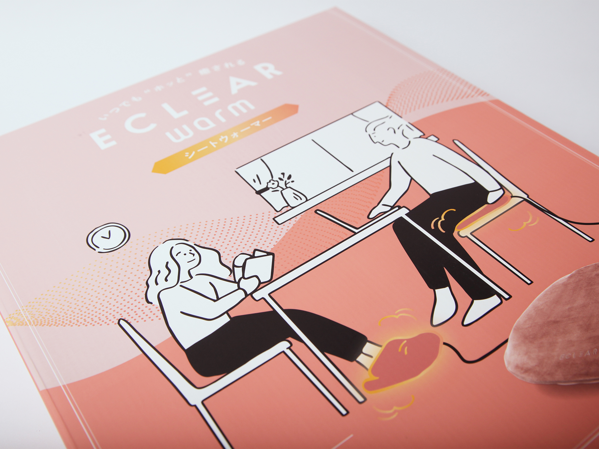 1人の主人公(女性)のライフスタイルの中で、ECLEAR warmの商品が活躍する様子をイラストで表現することで、ユーザーが自分自身の暮らしに置き換えながら商品を想像できるデザインにしました。