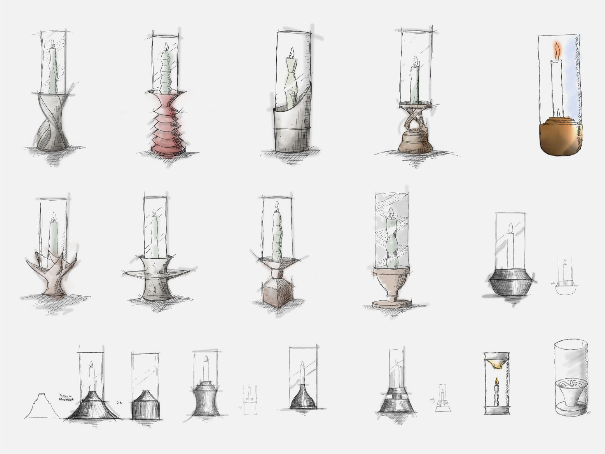 さまざまな形状やコンセプトの試行錯誤を経て、山中温泉の景色や文化から着想を得た3つのデザインで展開しました。