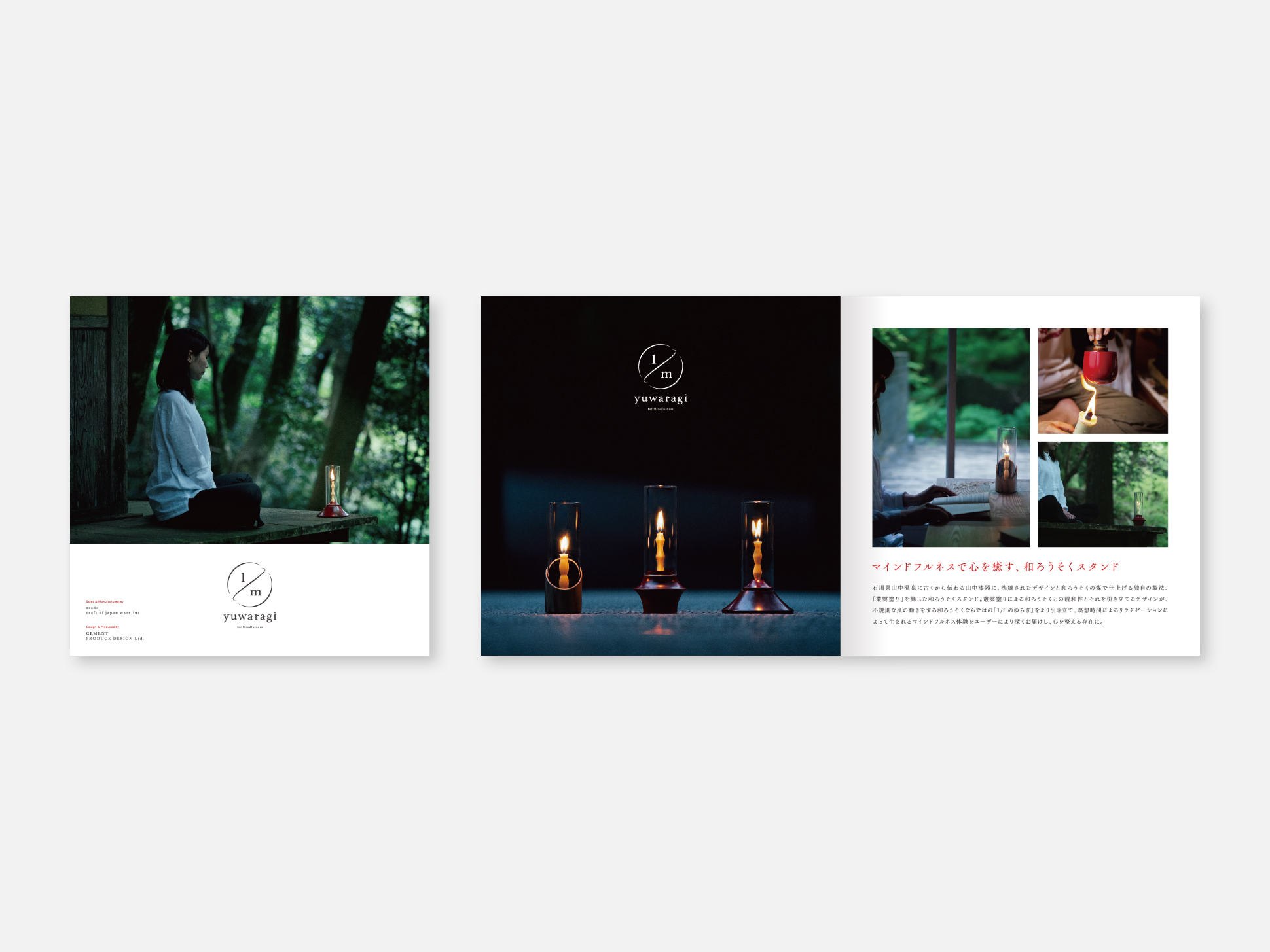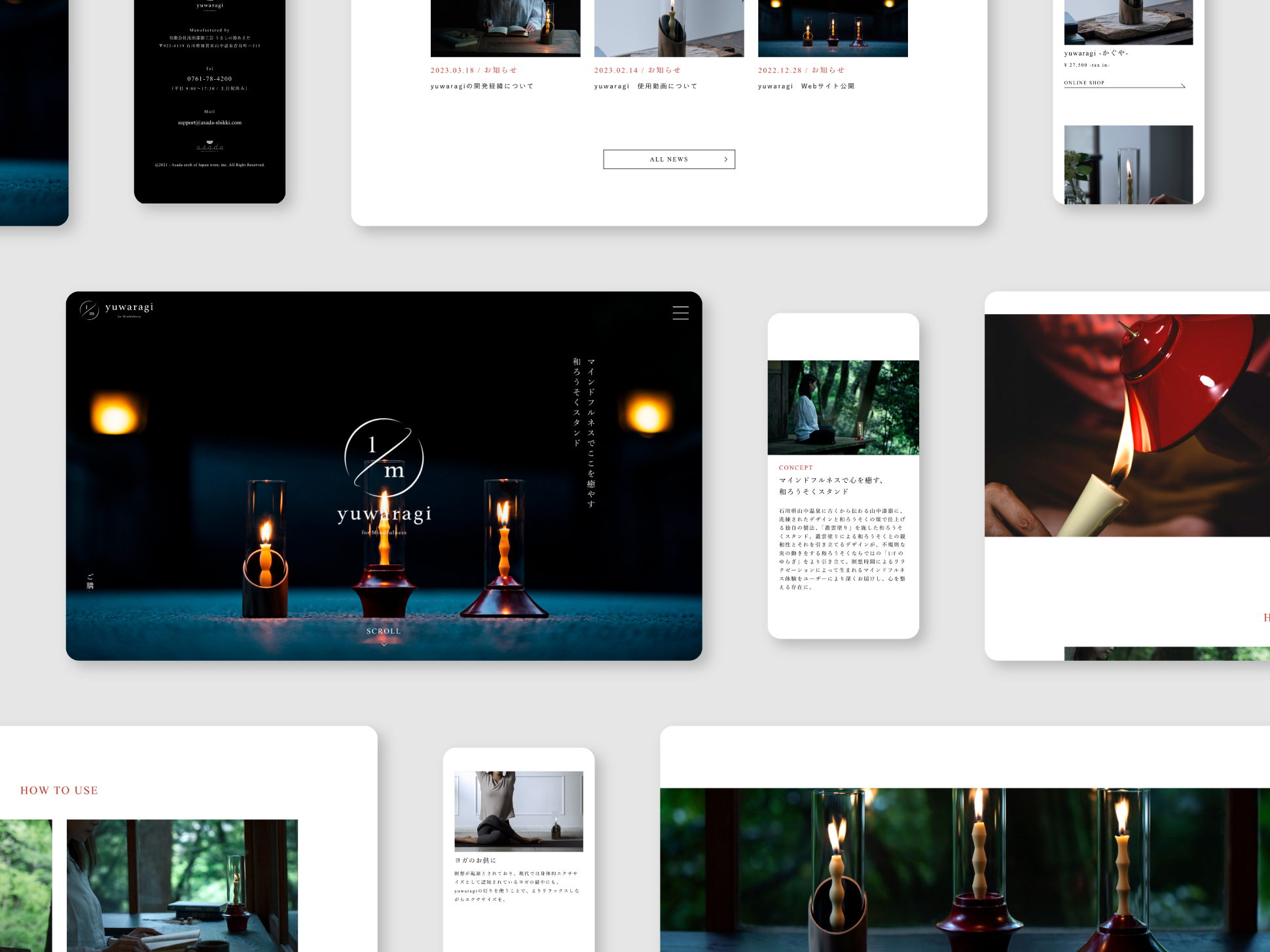和ろうそくを美しい漆で仕上げた燭台で彩る和ろうそくスタンド、「yuwaragi」のプロダクト・ネーミング・ロゴマーク・パッケージ・キービジュアル・リーフレット・Webサイトのデザインを担当させて頂きました。